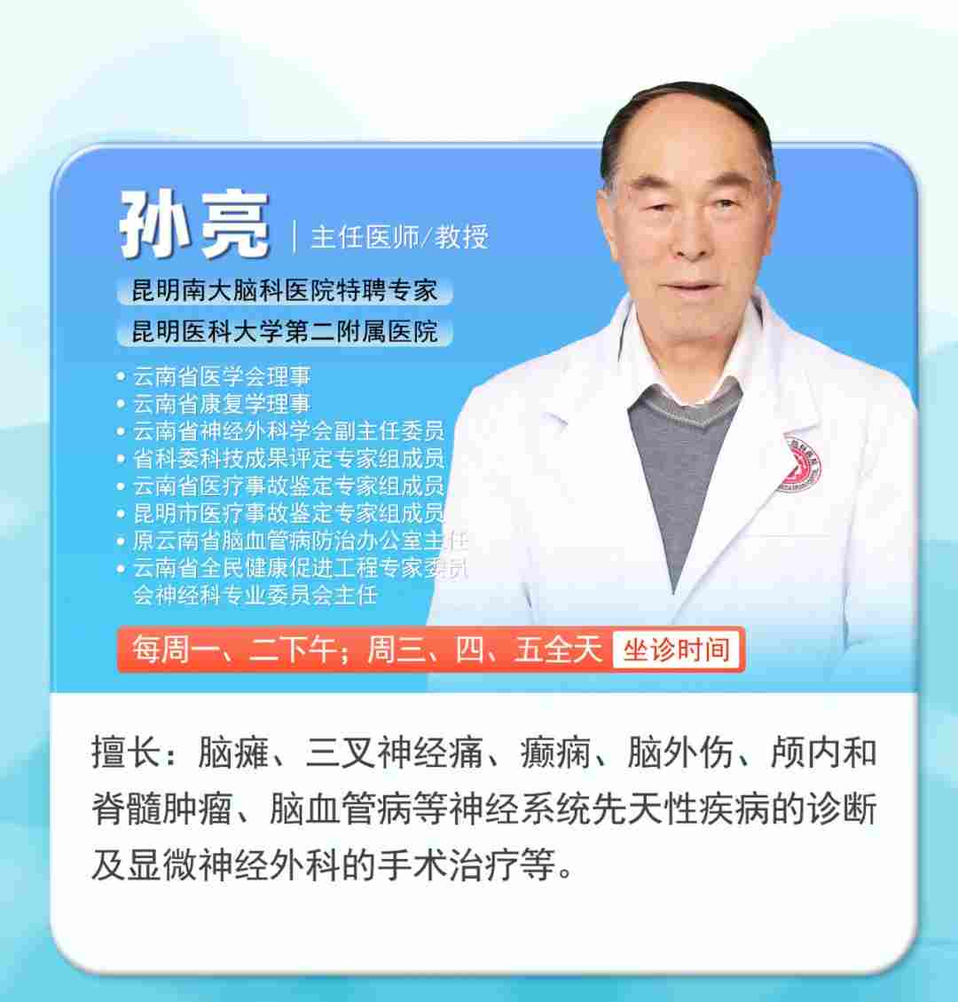 为满足广大群众在长假空闲时能获得优质诊疗服务的需求,切实解决“看名医难”的问题,昆明南大脑科医院将于国庆期间(10月1日—8日)开展“喜迎华诞,守护健康”多学科联合会诊活动。此次会诊活动特邀广州、云南三甲脑科专家,携手我院专家团队联合会诊,整合国内优质医疗资源,打破学科壁垒,为更多患者制定科学、专业、精准的个性化诊疗方案,让他们在治疗脑病的道路上少走弯路、少受疾病折磨!